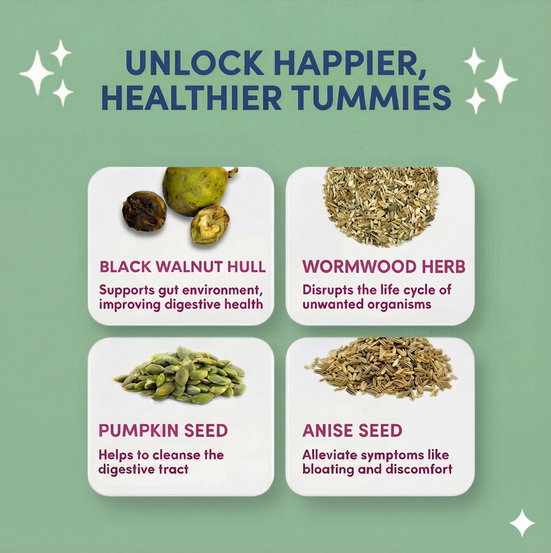 Carefully selected herbal ingredients traditionally used to support gut health and internal balance.